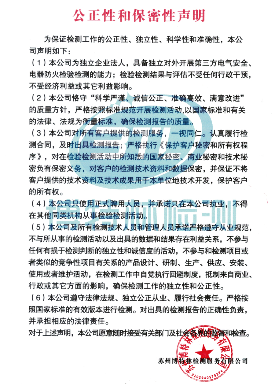 公司认真贯彻《中华人民共和国安全生产法》,根据国家认证认可监督管理委员会有关文件规定,建立了严格的企业管理和完善的电气安全检测质量保证体系,严格规范电气安全检测操作流程,按照有关国家标准和行业标准实施电气安全检测,以“服务客户、服务社会”为企业使命。以科学的方法、精湛的技术、优质的服务立足全省、面向全国电气安全检测市场,减少灾害,安全生产。公司作为电气安全检测专注机构,愿与社会各界加强沟通、密切配合,共同做好安全工作,把灾害消灭在萌芽状态,减少灾害事故,保障人民生命财产安全。