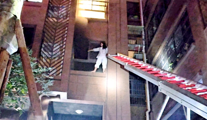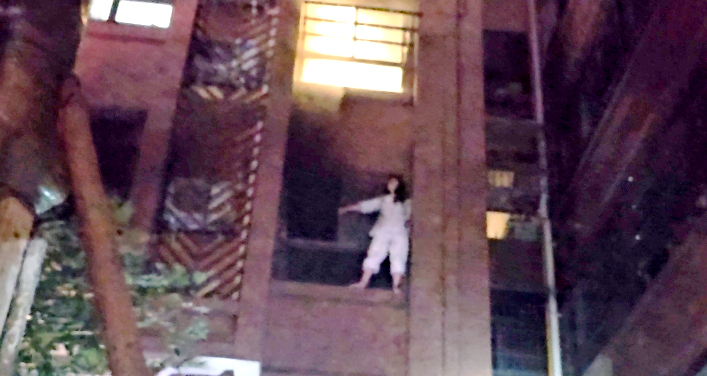 其中一人站在右侧卧室外窗台上